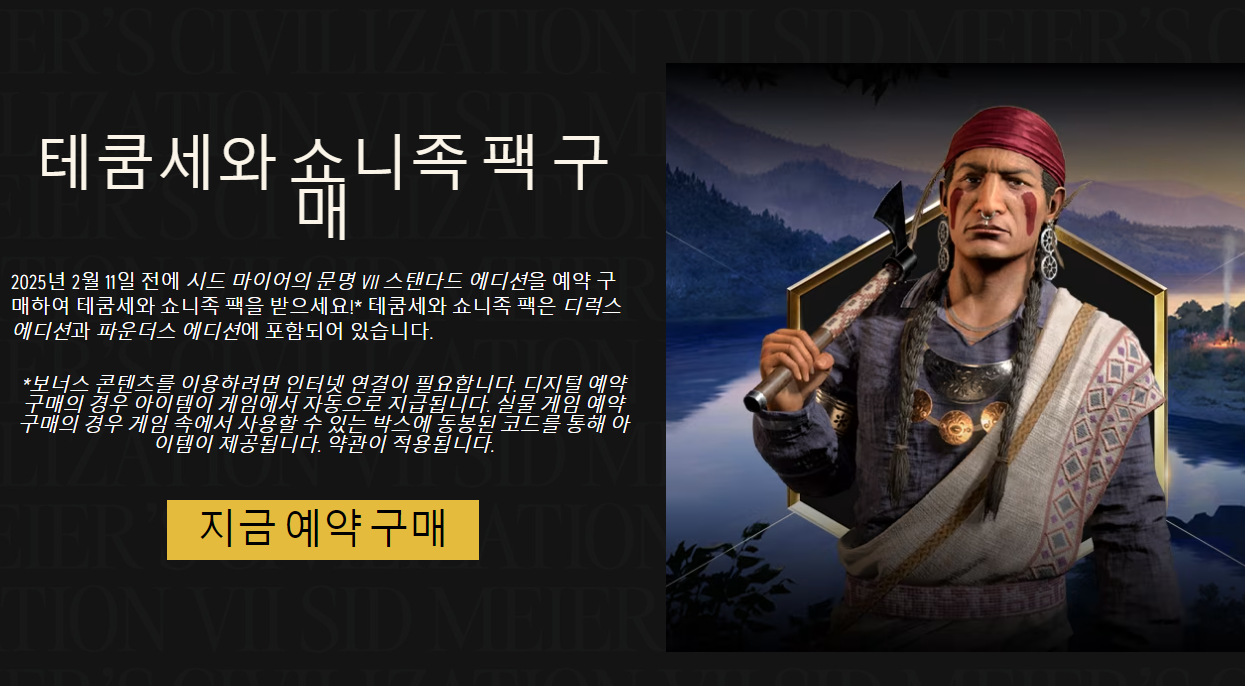 - 테쿰세와 쇼니족 팩 제공: 예약 구매자에게 특별한 문명 팩이 제공됩니다.