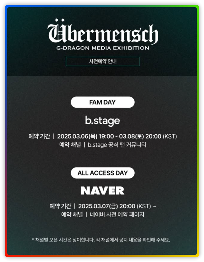 - 전시회 사전 예약 일정: 2025년 3월 7일 오후 8시부터 시작