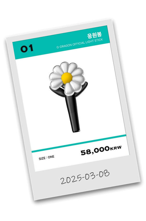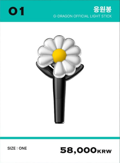 지드래곤의 응원봉 ‘데이지봉’은 오프라인 전시회 및 온라인 판매를 통해 구매할 수 있다.