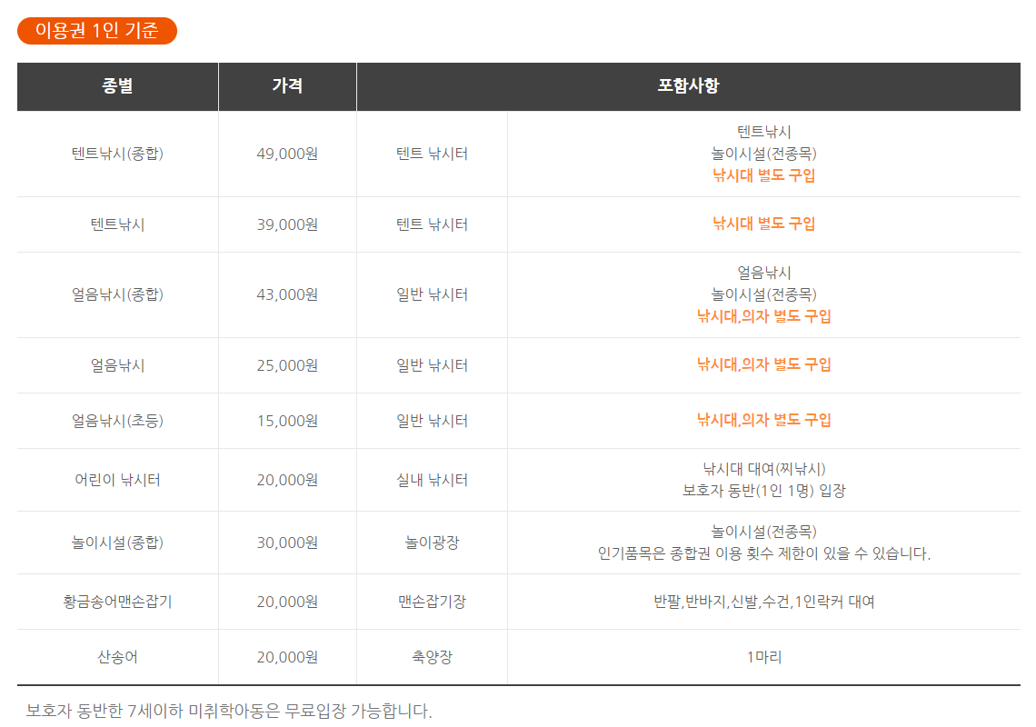 텐트는 1동당 2인이 사용가능하며 ,요금은 1인 기준입니다.