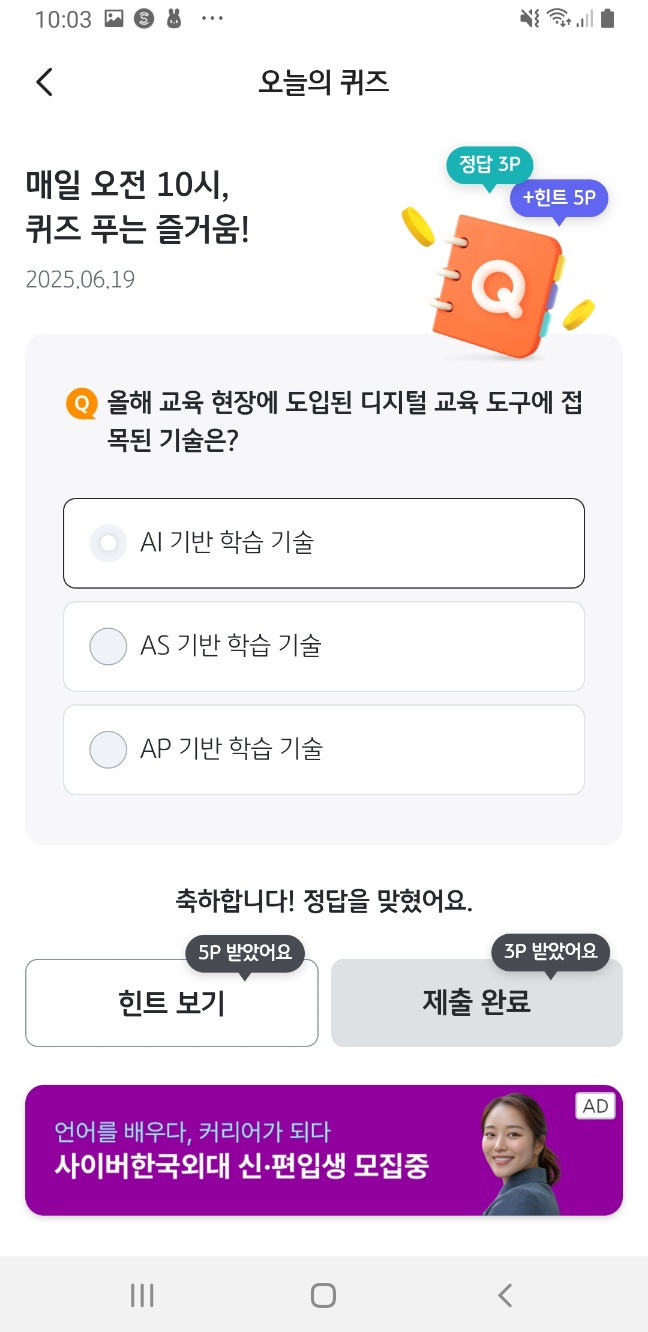 출석처럼 매일 퀴즈 풀고 포인트도 쌓아보세요.