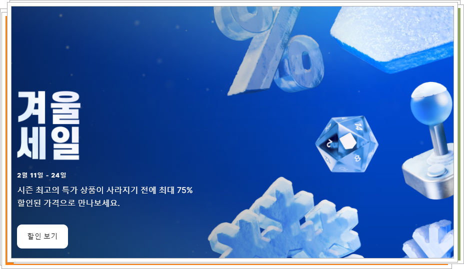 에픽게임즈 스토어에서 2025년 겨울 할인 이벤트가 한창 진행 중입니다! ❄️🔥 2월 24일까지 다양한 인기 게임들이 최대 75% 할인되니, 놓치지 마세요.