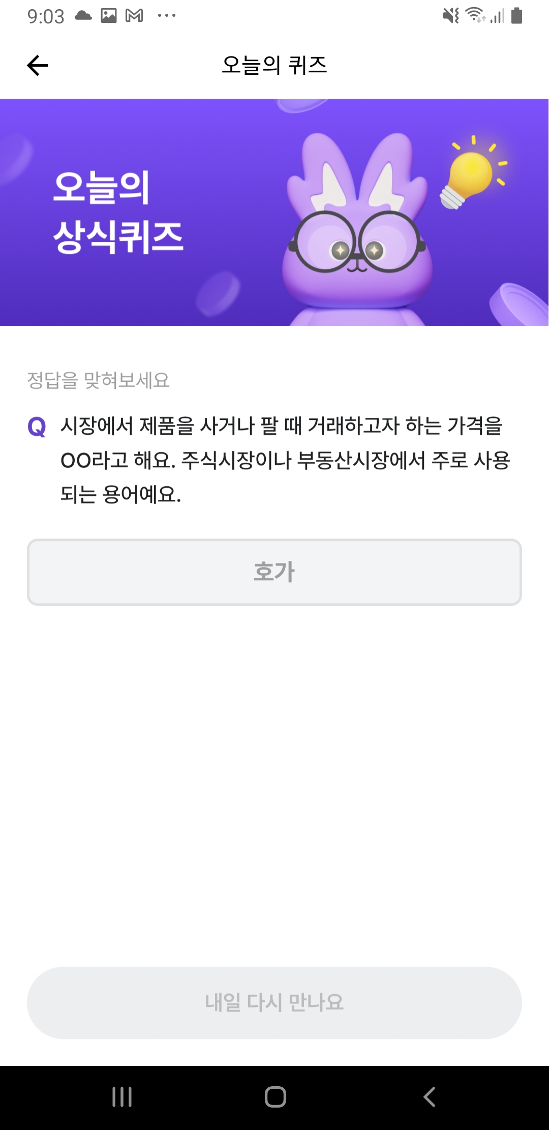 비트버니 앱의 ‘오늘의 상식 퀴즈’ 메뉴에서