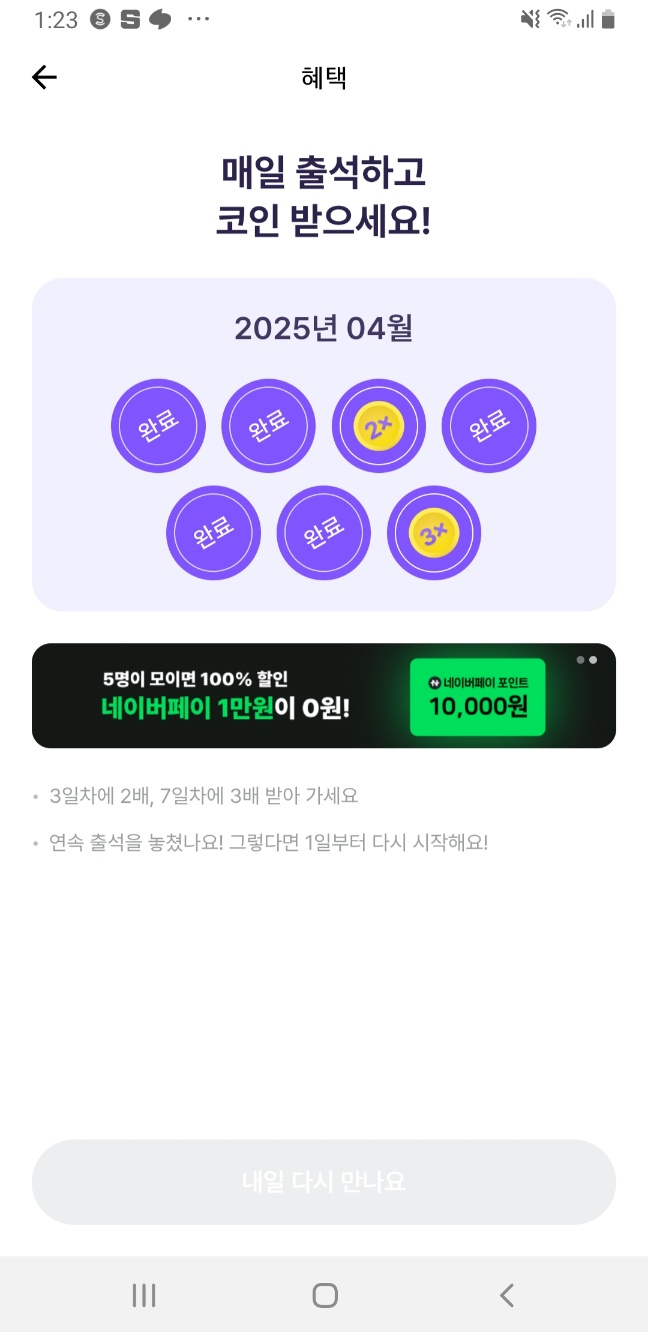 - 매일 출석만 해도 기본 포인트 지급!
