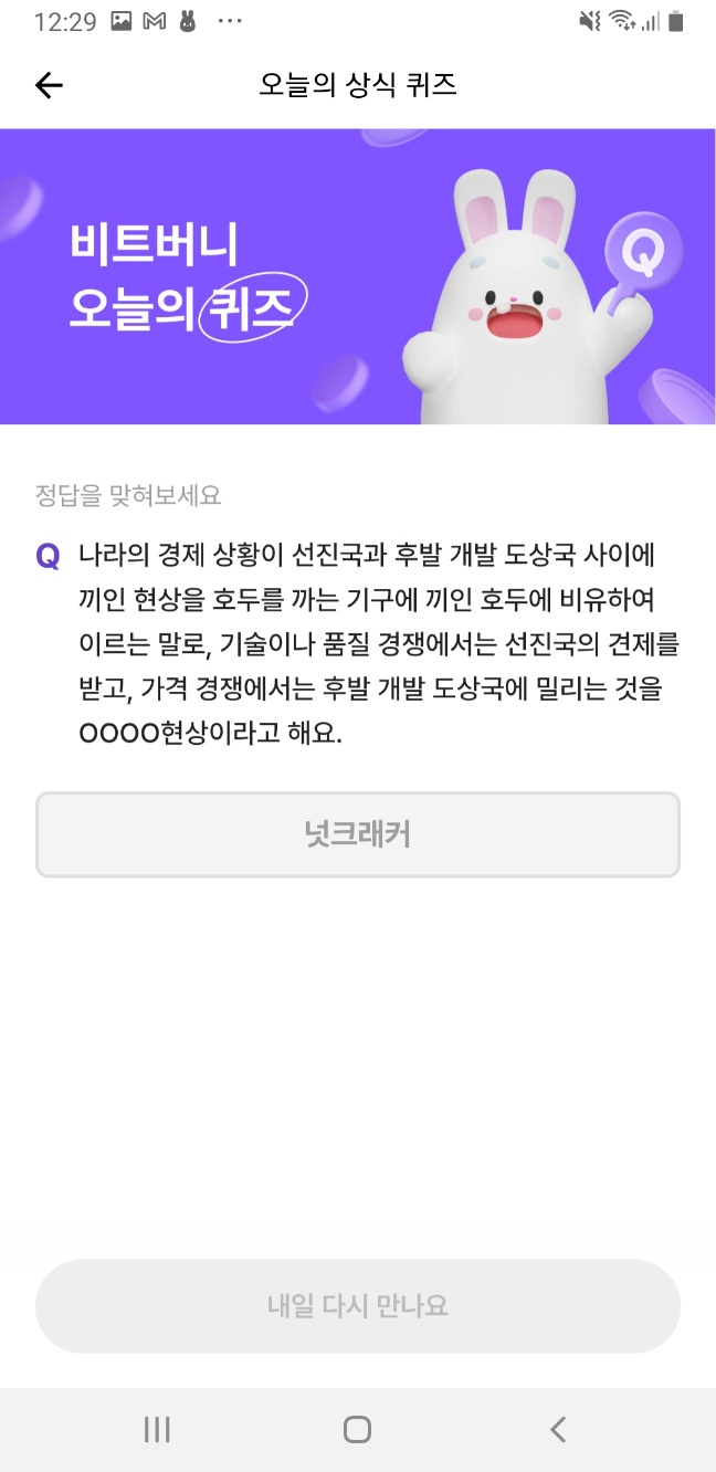 비트버니 앱 ‘오늘의 상식 퀴즈’ 메뉴에 접속해