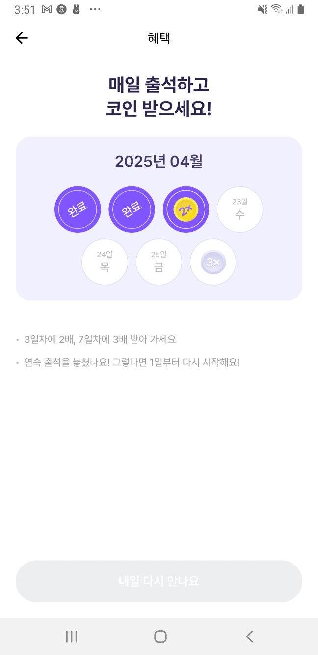 - 매일 앱 접속만 해도 기본 포인트 지급