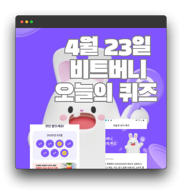 비트버니 앱 '오늘의 상식 퀴즈' 메뉴에 접속해