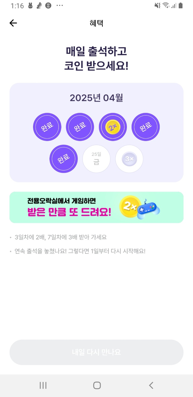 - 연속 출석 시 랜덤 곱배기 보너스도 GET! 🎁