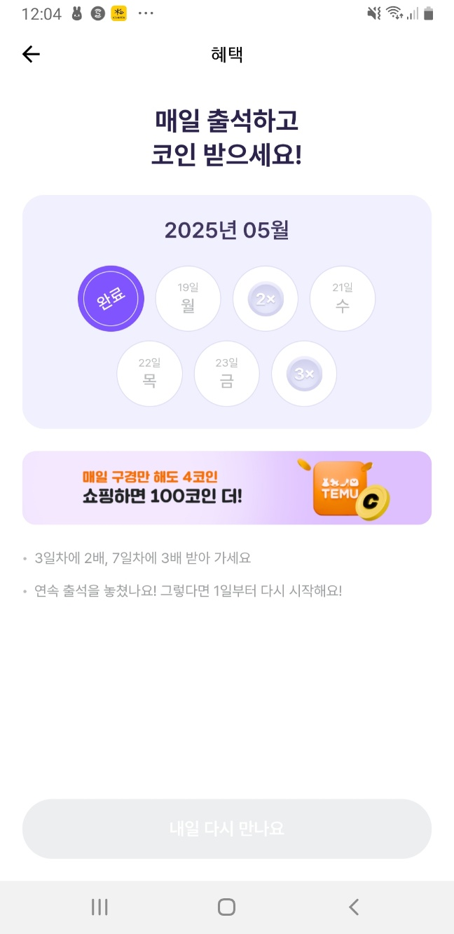 - 연속 출석하면 곱배기 보너스 포인트 획득 기회!