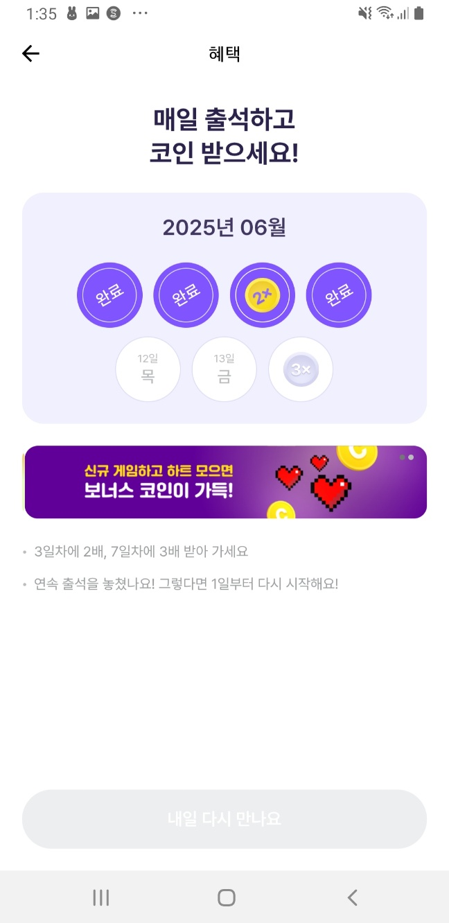 - 연속 출석 시 랜덤 곱배기 보너스 찬스! 🎁