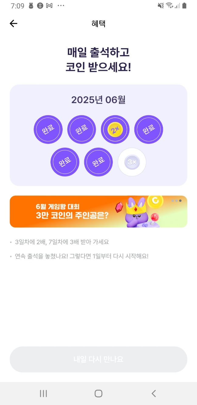 - 연속 출석 시 랜덤 곱배기 보너스 기회 제공 🎉