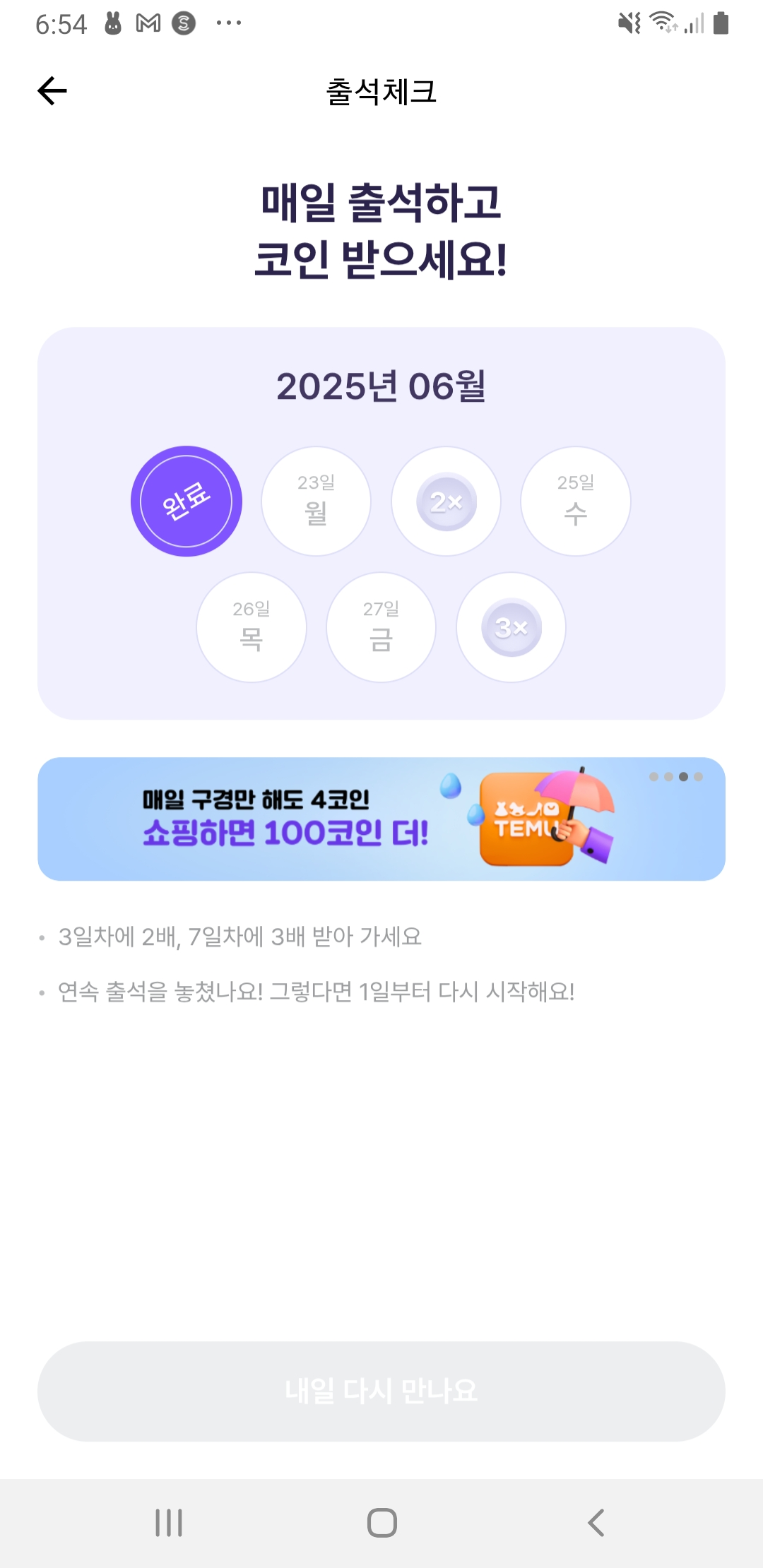 - 연속 출석 시 랜덤 곱배기 보너스도 팡팡 터져요 🎁