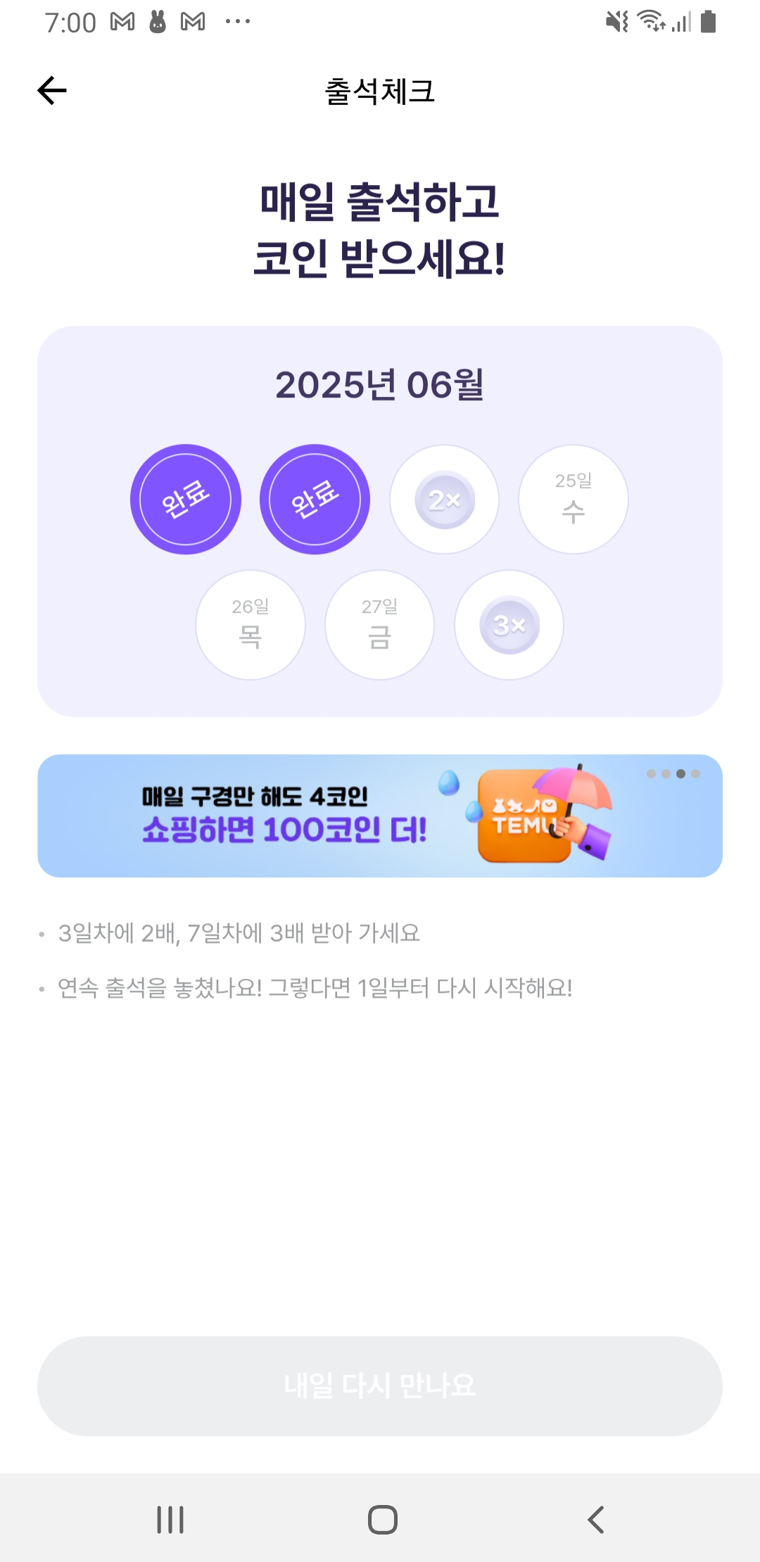 - 하루 한 번 앱 접속만 해도 기본 포인트 지급