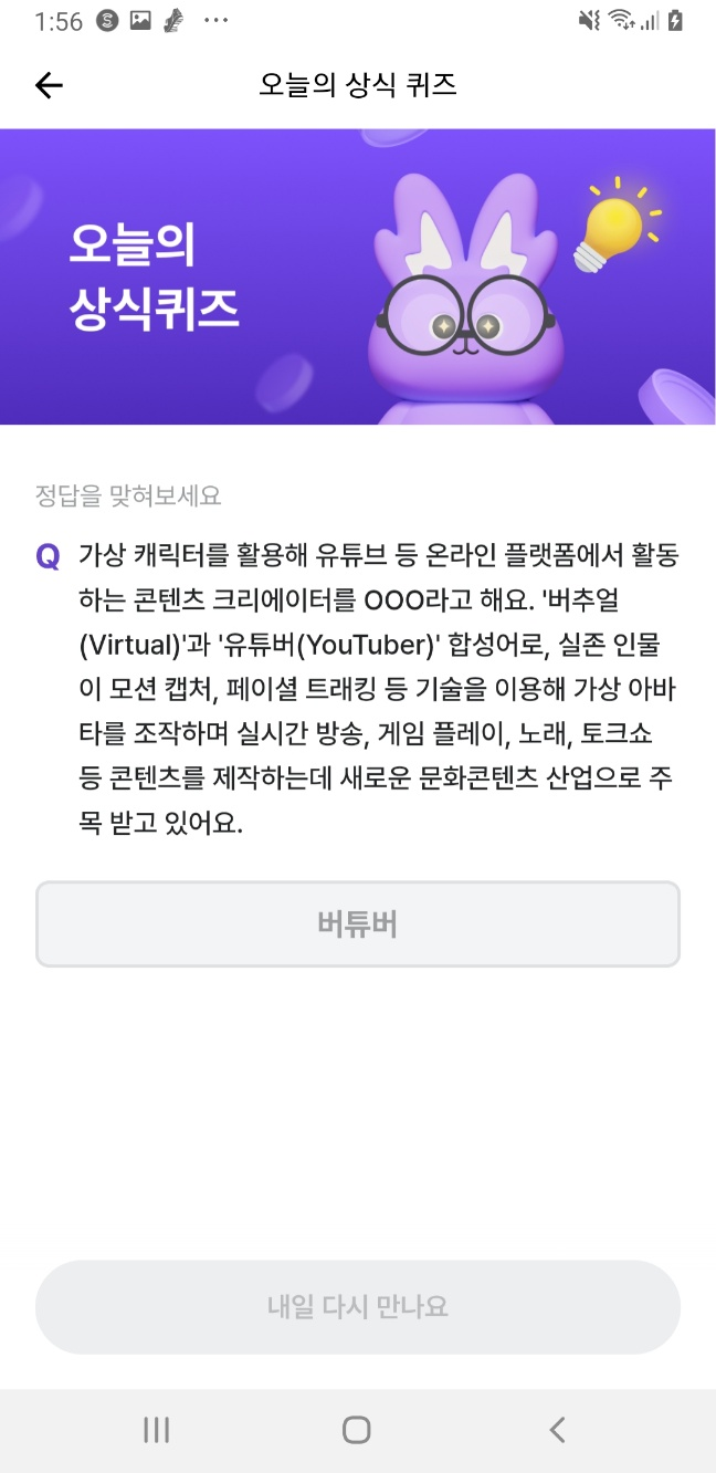 비트버니 앱 ‘오늘의 상식 퀴즈’ 메뉴에 접속해