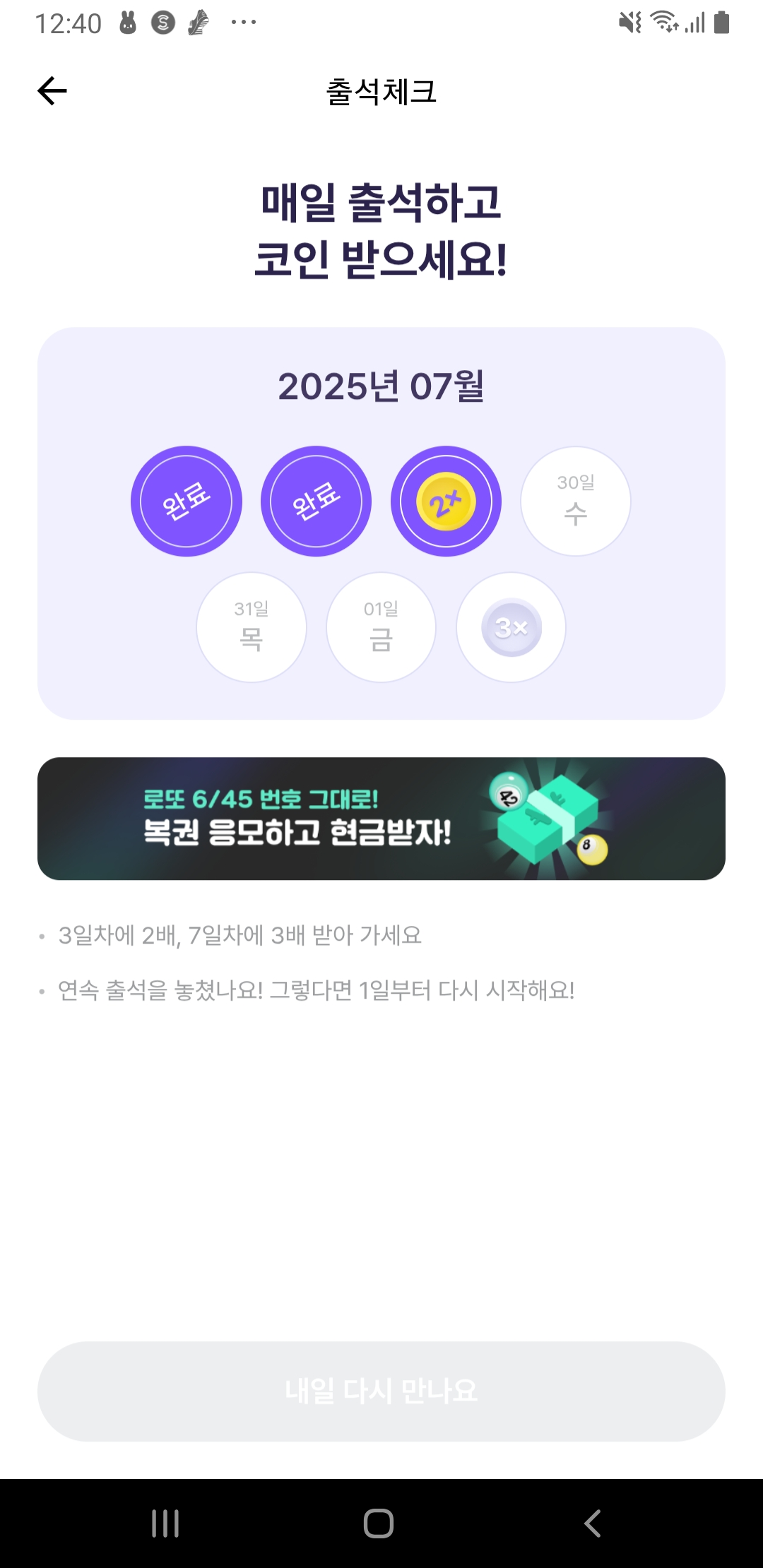 내일도 잊지 말고 출석하세요! 🔔