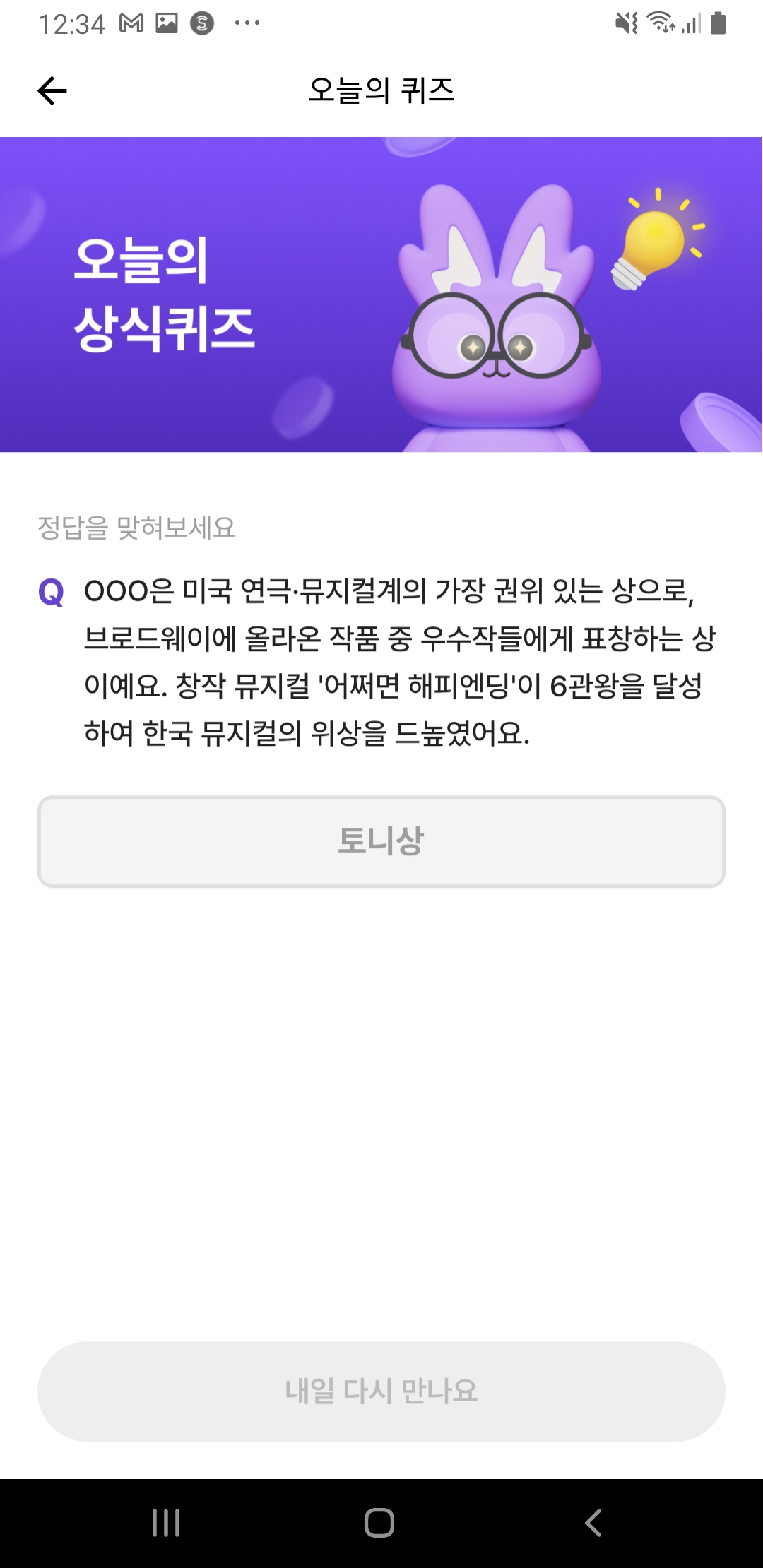비트버니 앱 ‘오늘의 상식 퀴즈’ 메뉴 접속 후