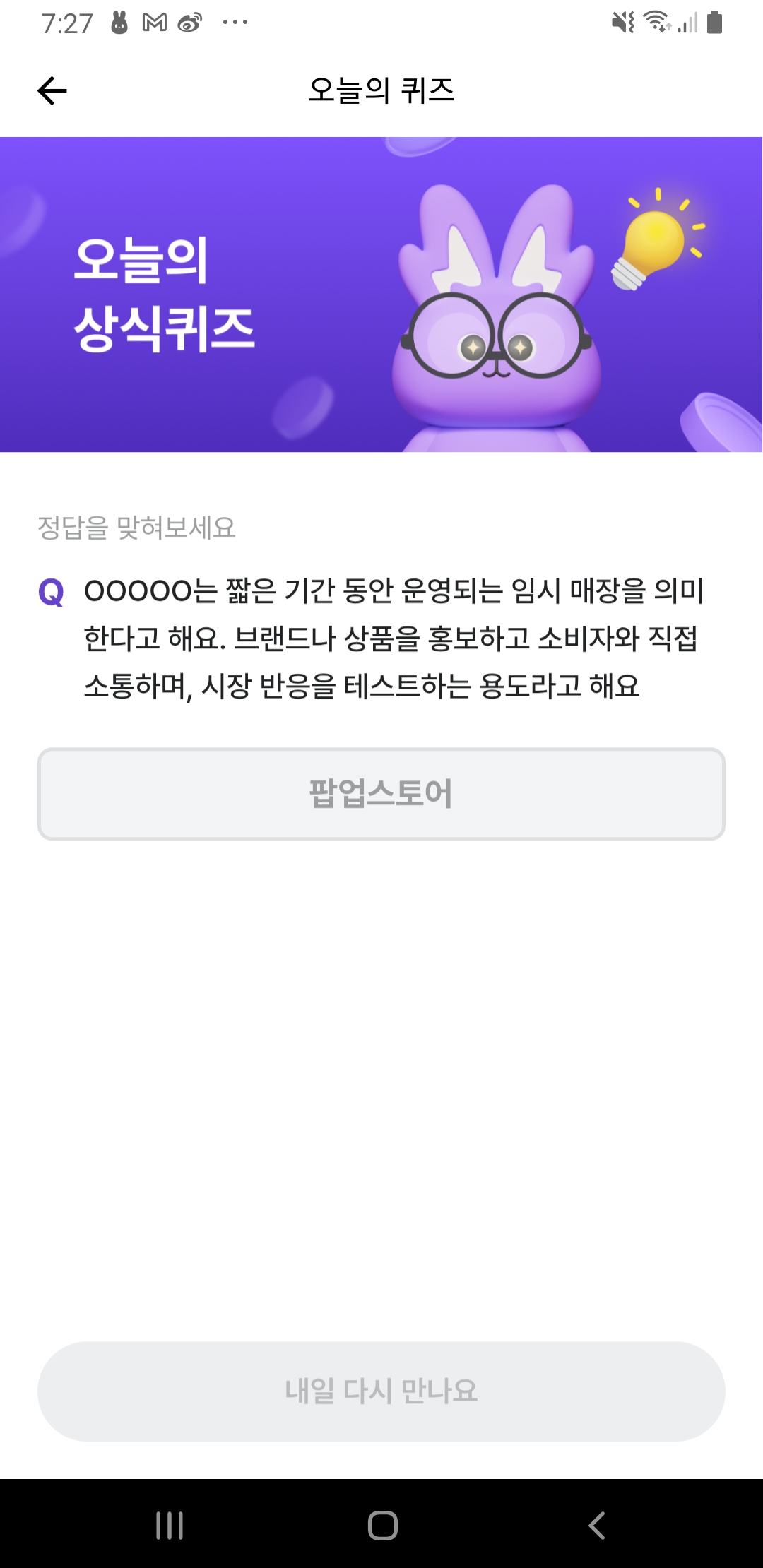비트버니 앱 ‘오늘의 상식 퀴즈’ 메뉴 접속 후