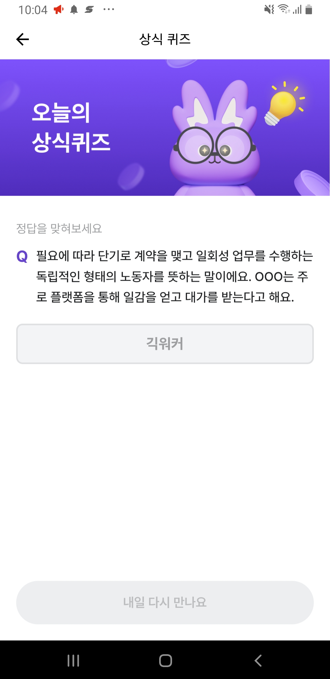비트버니 앱 ‘오늘의 상식 퀴즈’ 메뉴에서