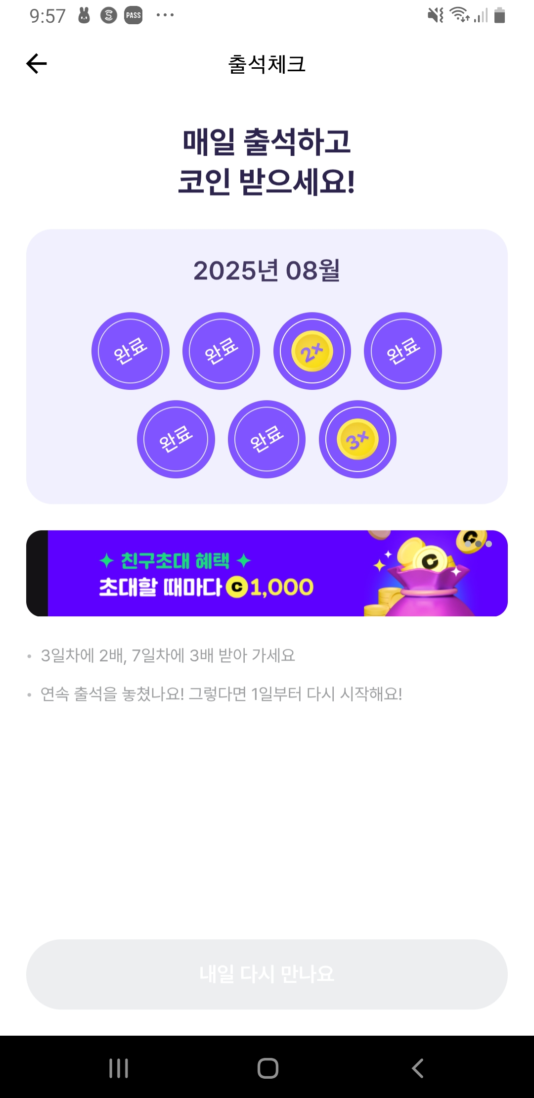 - 매일 앱 접속만 해도 기본 포인트 지급