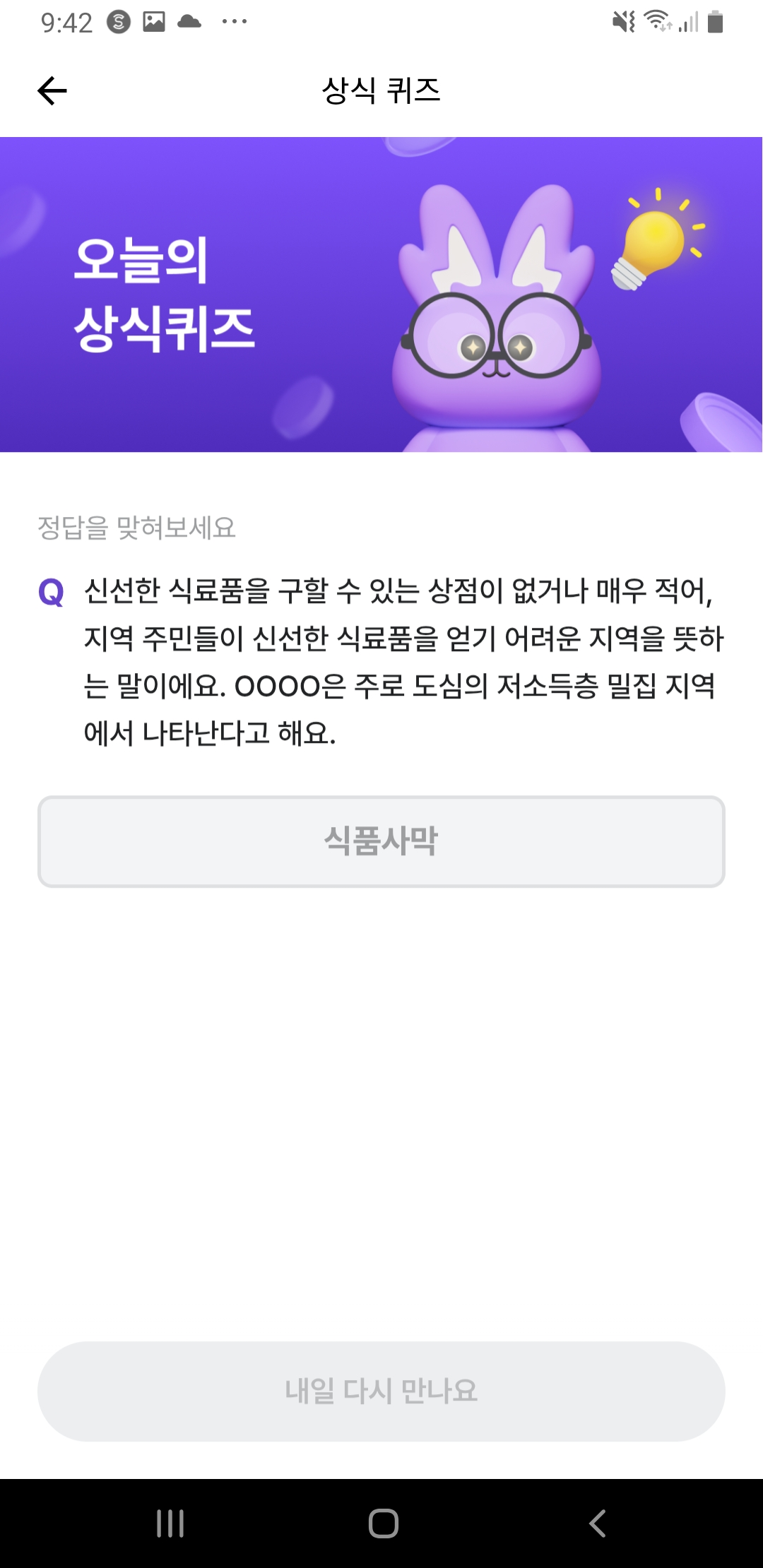 비트버니 앱에서 ‘오늘의 상식 퀴즈’ 메뉴로 접속해
