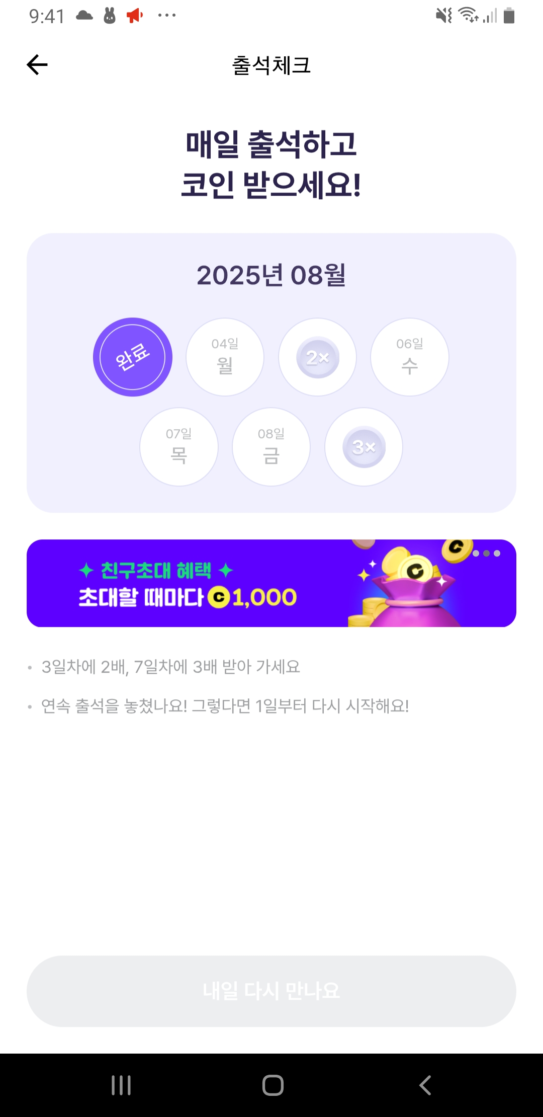 - 출석과 걷기를 모두 달성하면 하루 루틴 완성!