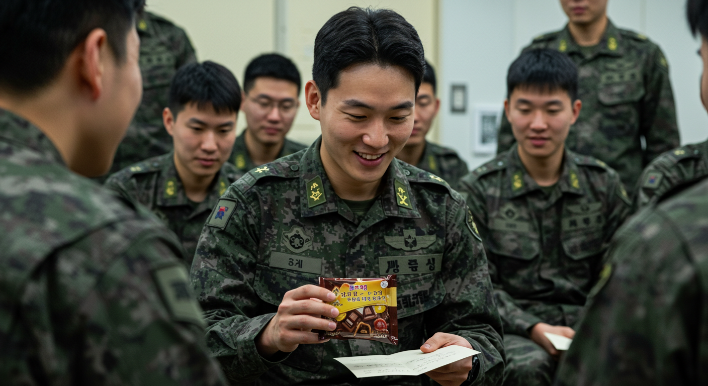딱딱한 PX 간식만 먹는 친구에게, 작은 초콜릿 하나가 의미 있는 응원이 될 수 있어!