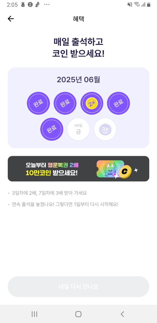 - 연속 출석 시 랜덤 보너스 포인트도 쌓여요!