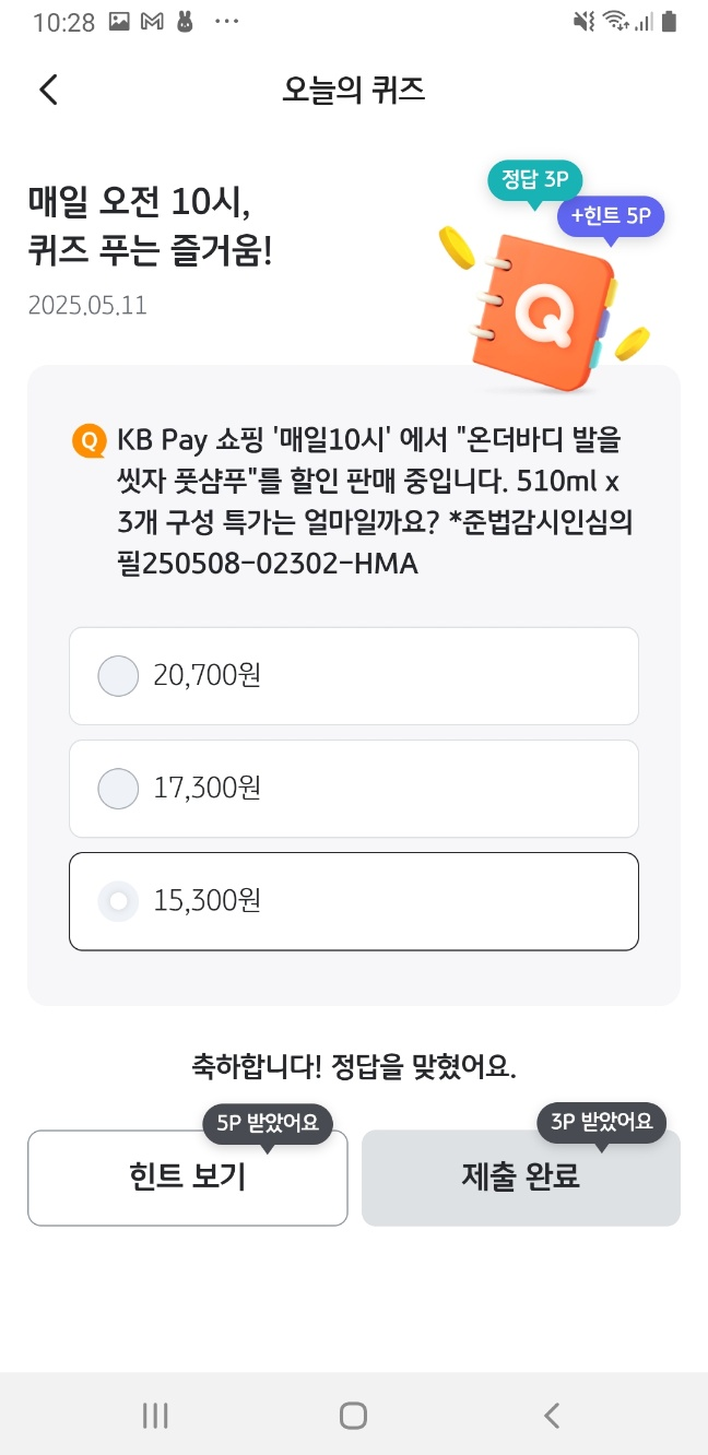 - 힌트 보기만 해도 5P 추가 적립!