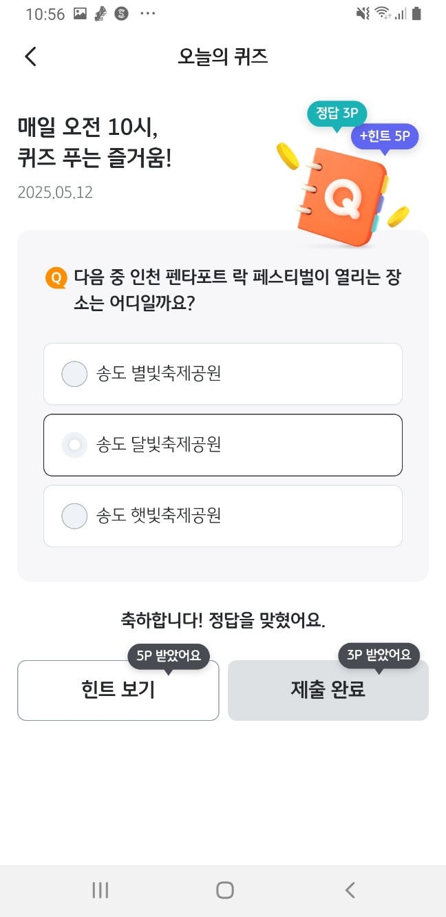 - 정답 선택 후 제출 시 즉시 3P 적립!