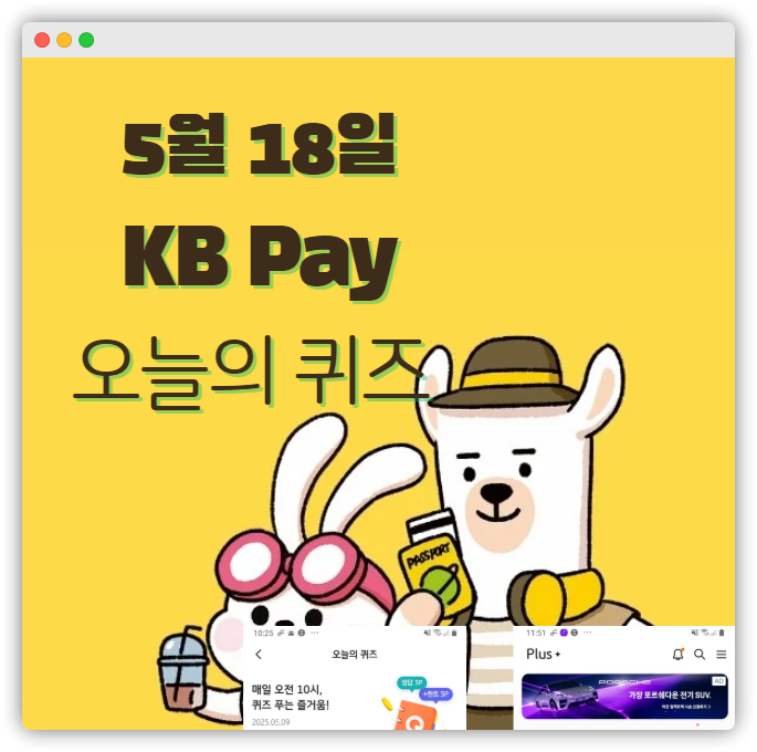 - KB Pay 앱 접속 → '오늘의 퀴즈' 메뉴 클릭