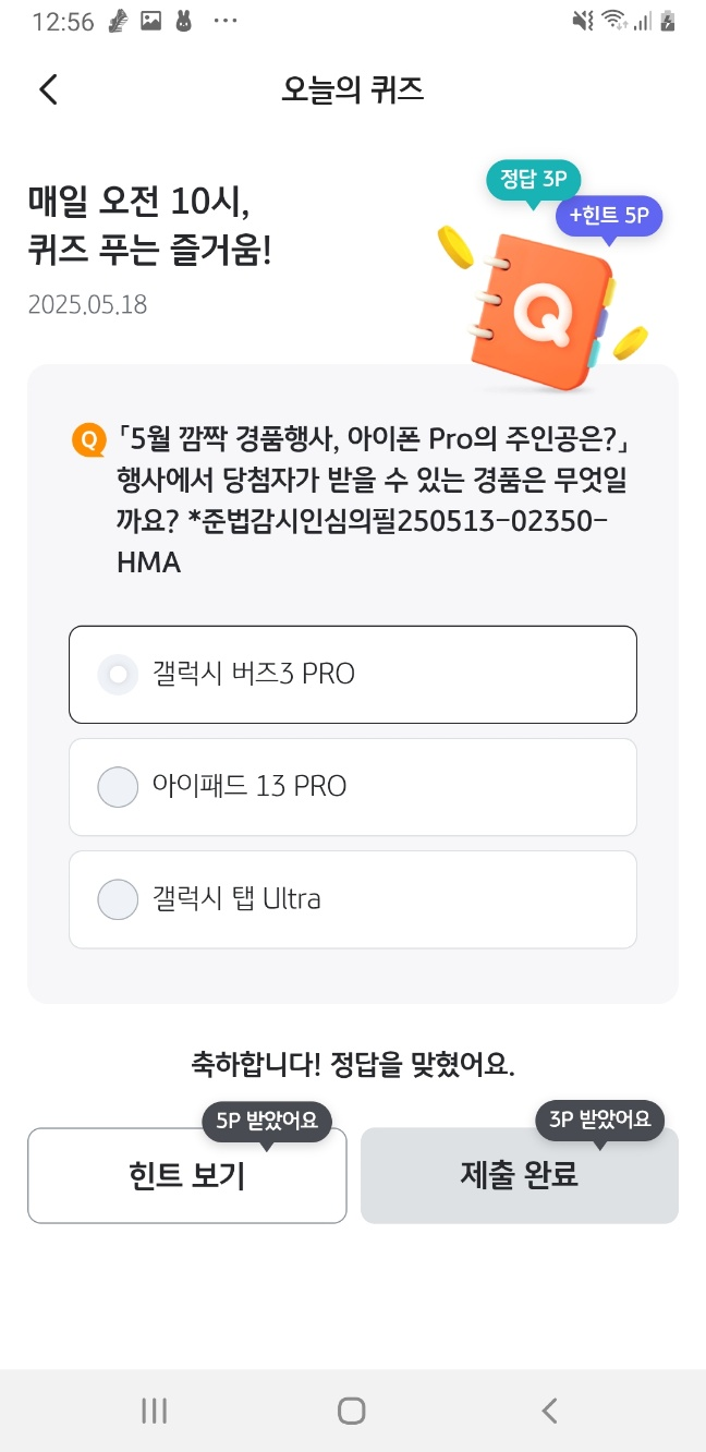 🎯 정답: 갤럭시 버즈3 PRO ✅