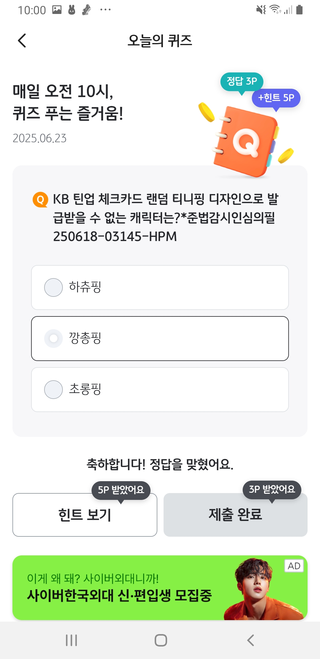 - 힌트 보기만 해도 5P 추가 적립!