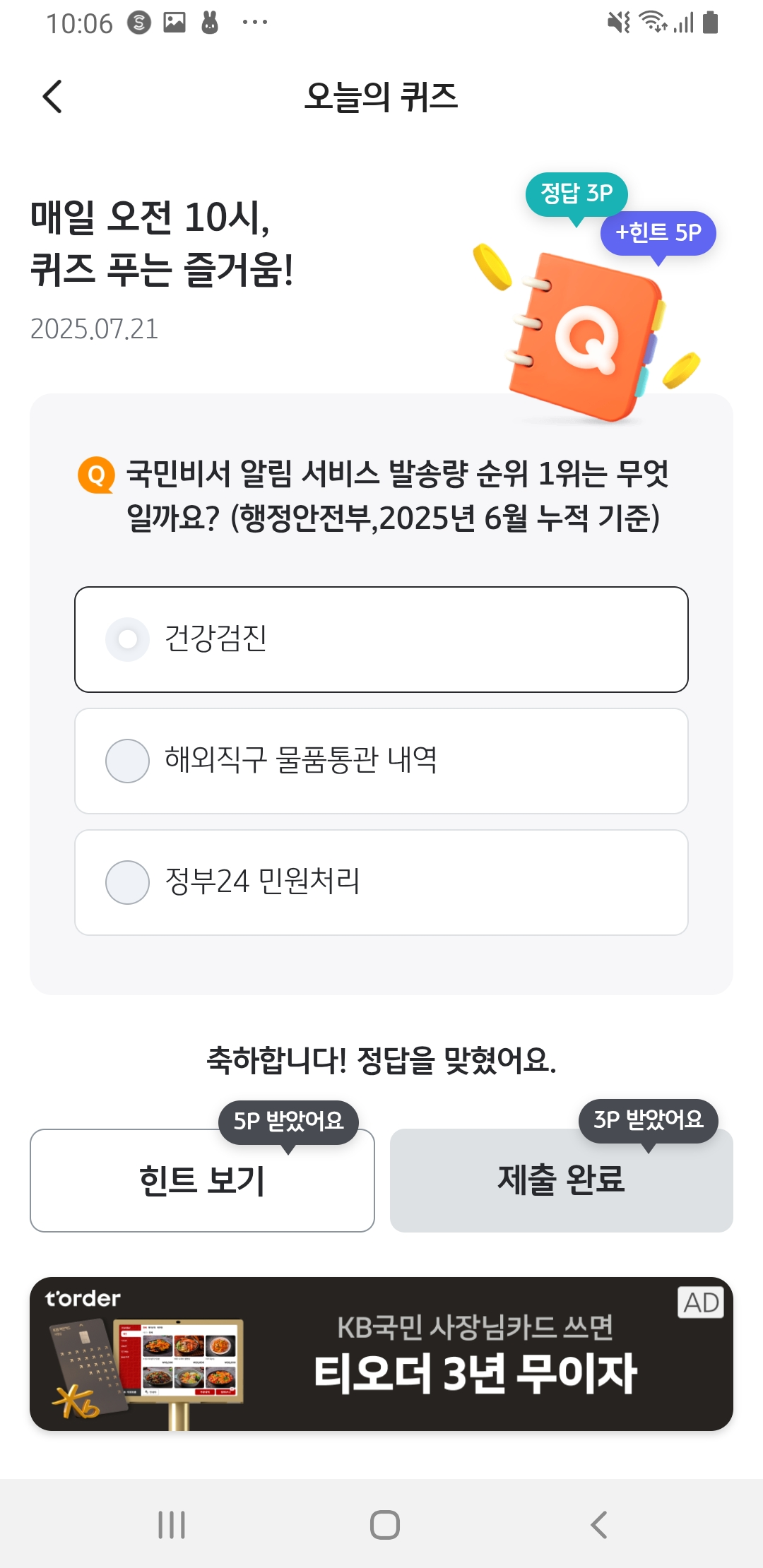 🎯 정답: 건강검진 ✅