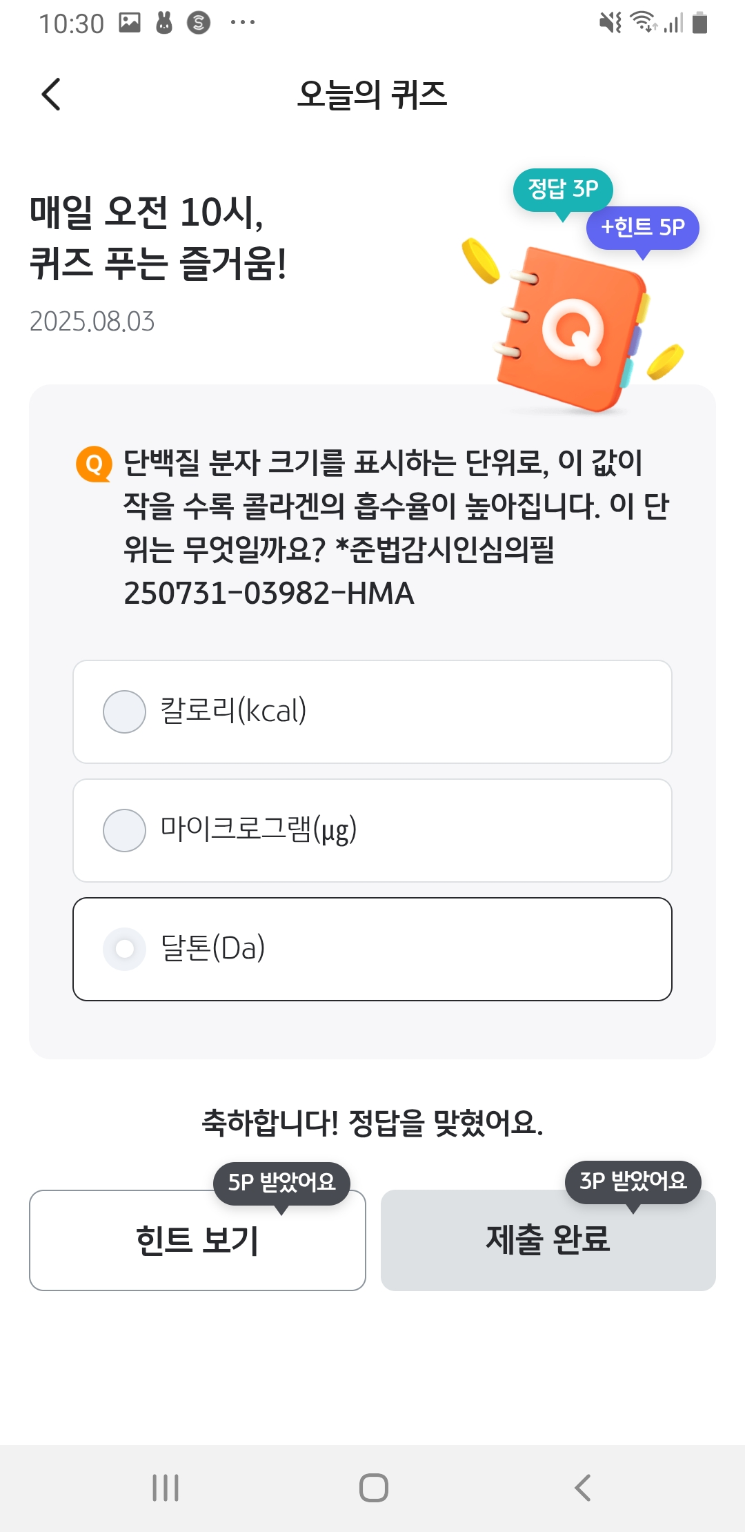 “콜라겐도 수치 보고 고르자! 작을수록 잘 흡수된다.”