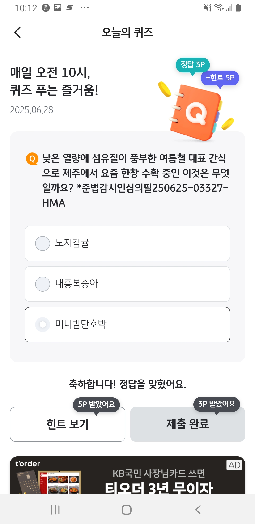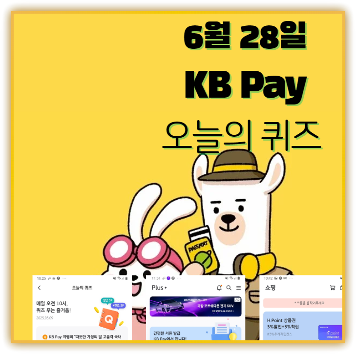 - 매일 오전 10시 KB Pay 앱 접속 → 오늘의 퀴즈 클릭
