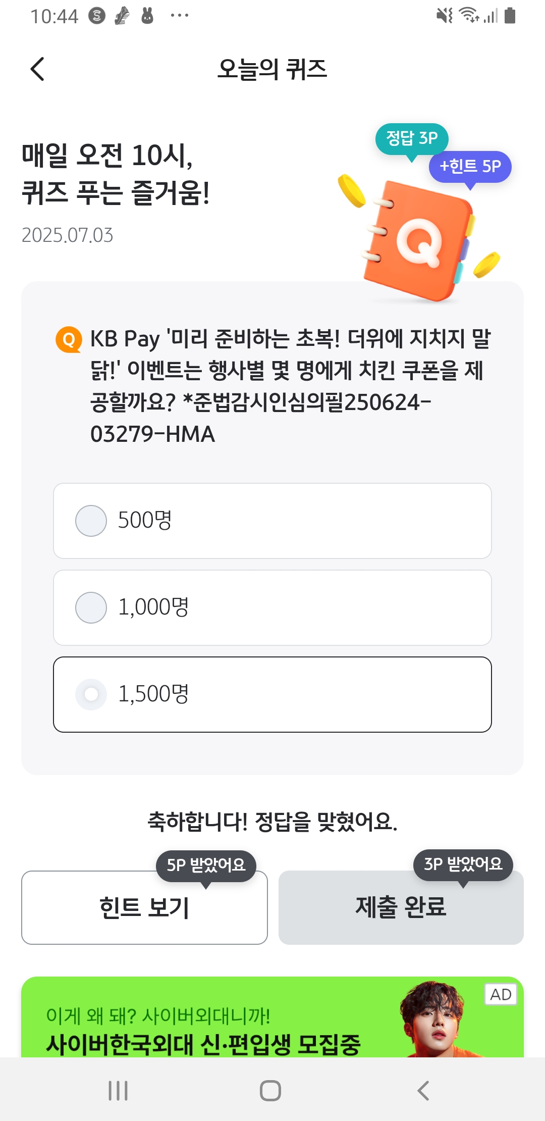 - 매일 오전 10시, KB Pay 앱 접속 → 오늘의 퀴즈 참여