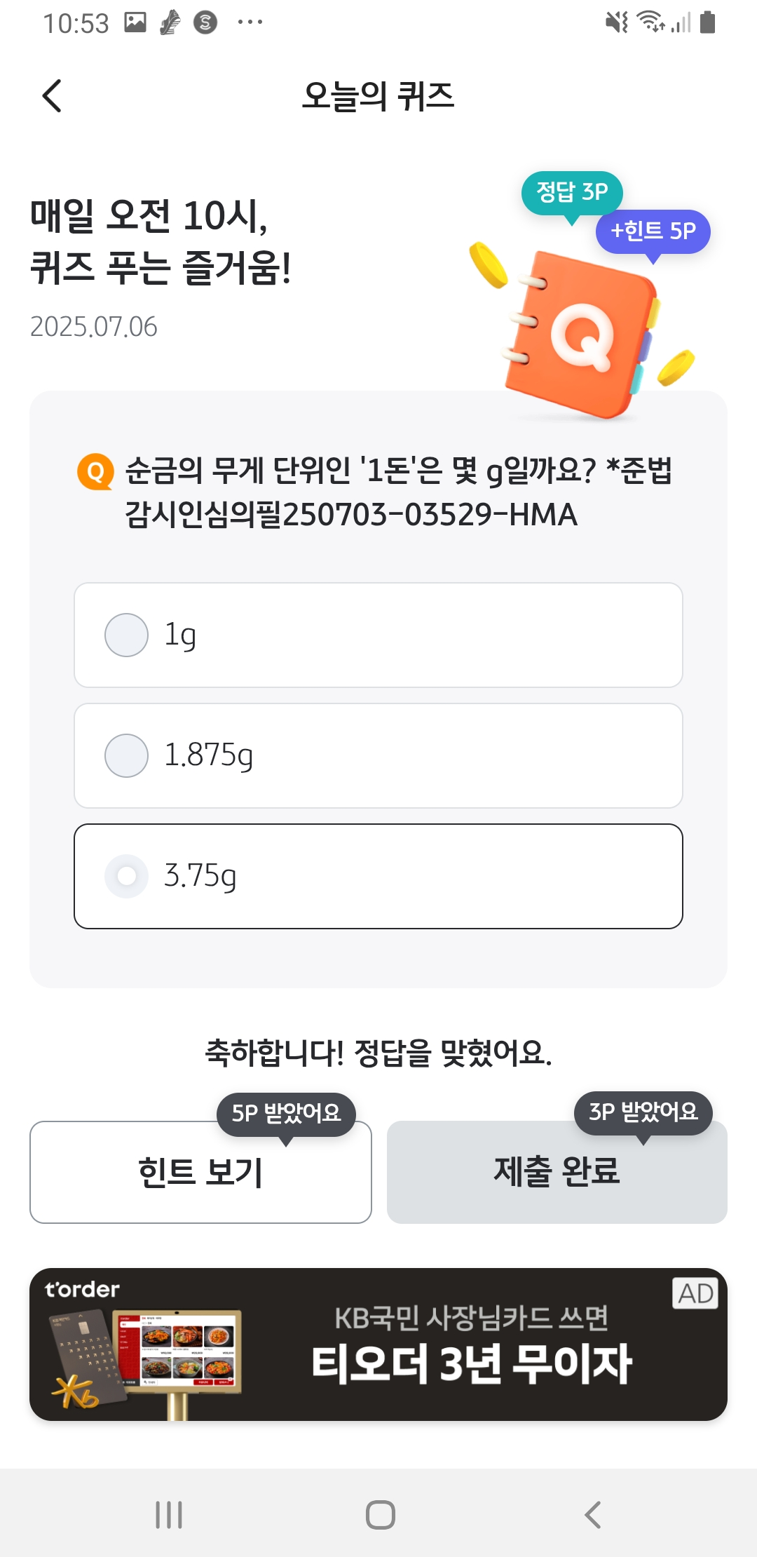 오늘도 KB Pay 퀴즈 풀고