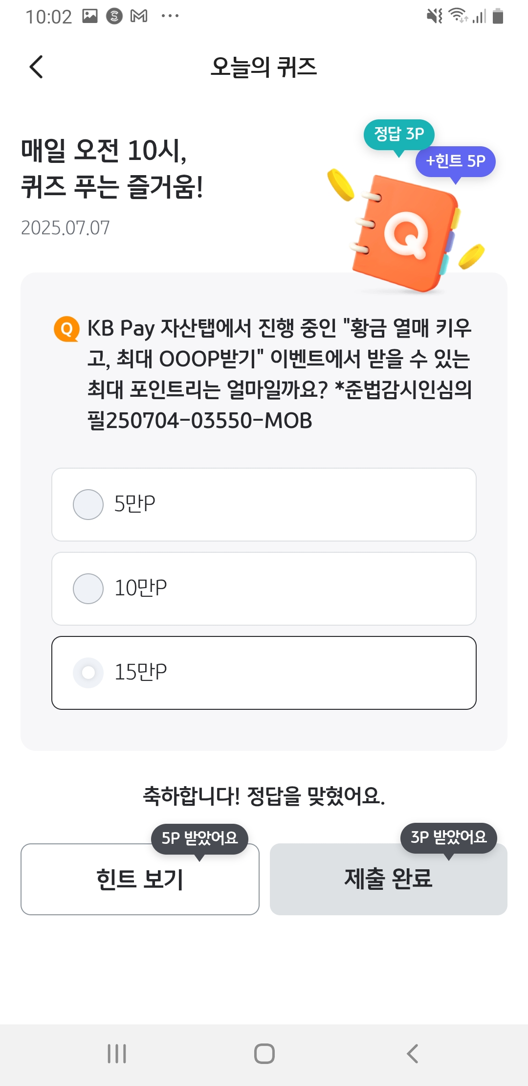 - 매일 오전 10시, KB Pay 앱 접속 → 오늘의 퀴즈 참여