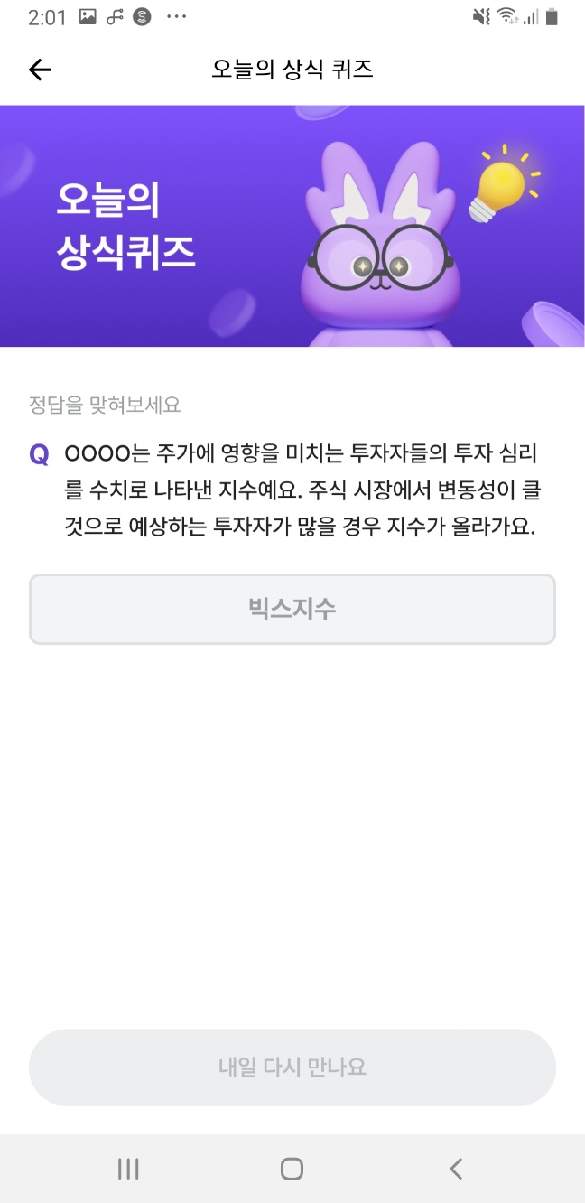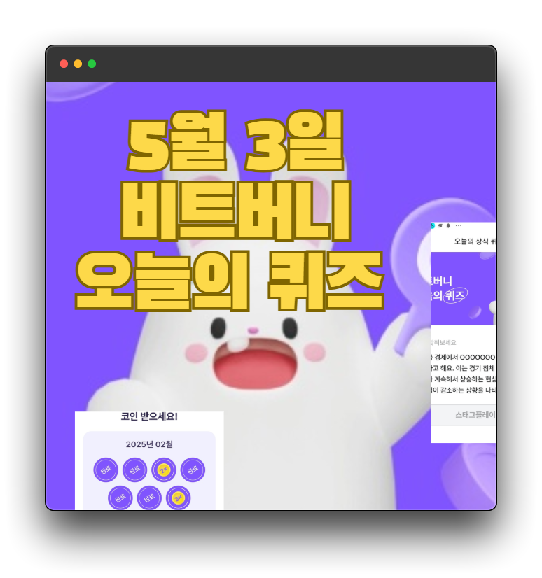 비트버니 앱의 ‘오늘의 상식 퀴즈’ 메뉴에 접속하신 후