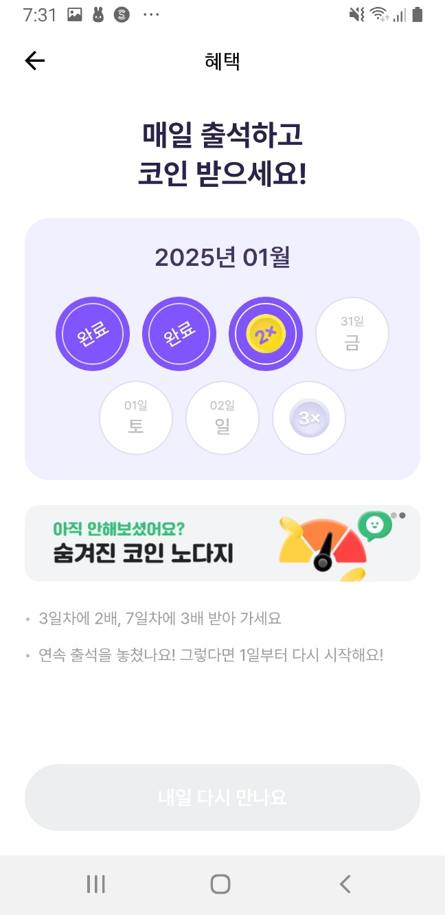 - 매일 출석하면 기본 포인트 지급!