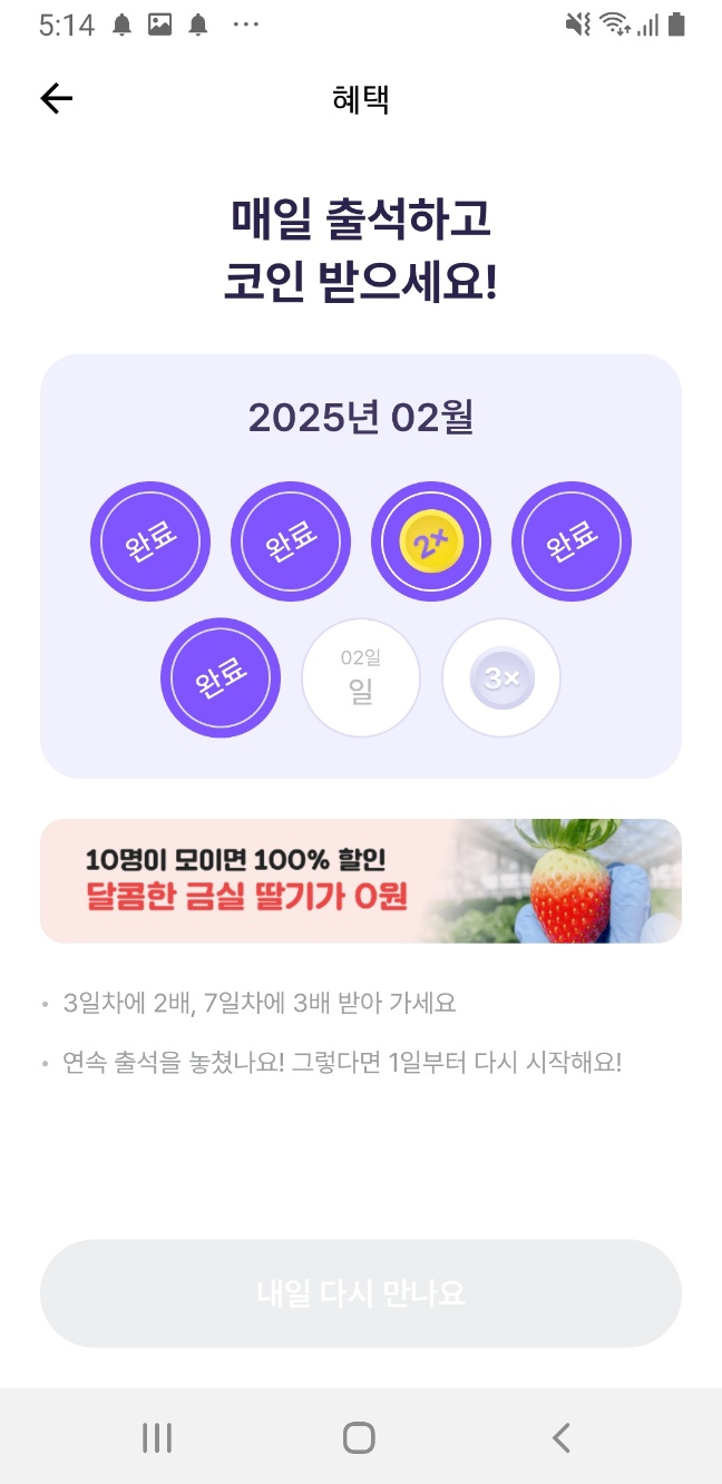 - 매일 출석하면 기본 포인트 지급!