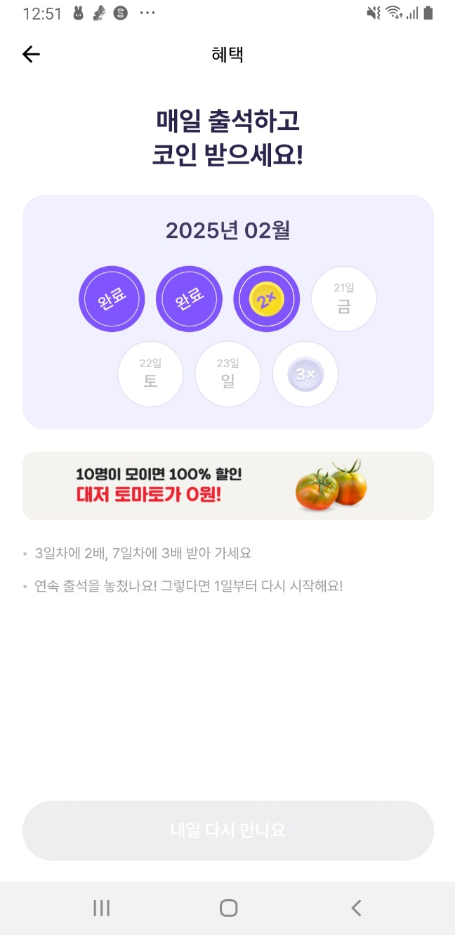 - 매일 출석하면 기본 포인트 지급!