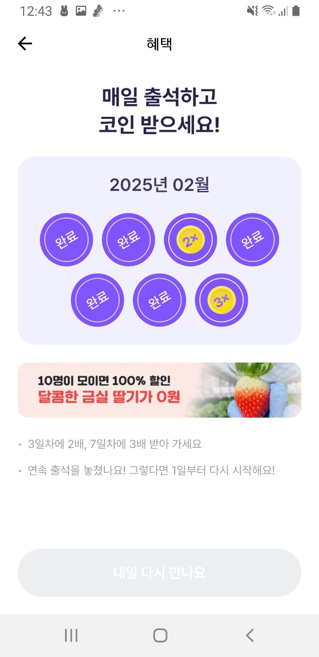 💡 TIP: 걷기 목표를 달성한 후 앱에 접속해 출석 체크까지 완료하면 효율적인 포인트 적립 가능!
