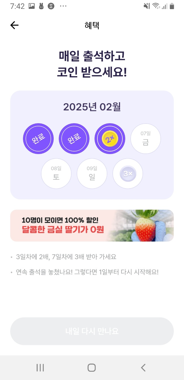- 매일 출석하면 기본 포인트 지급!