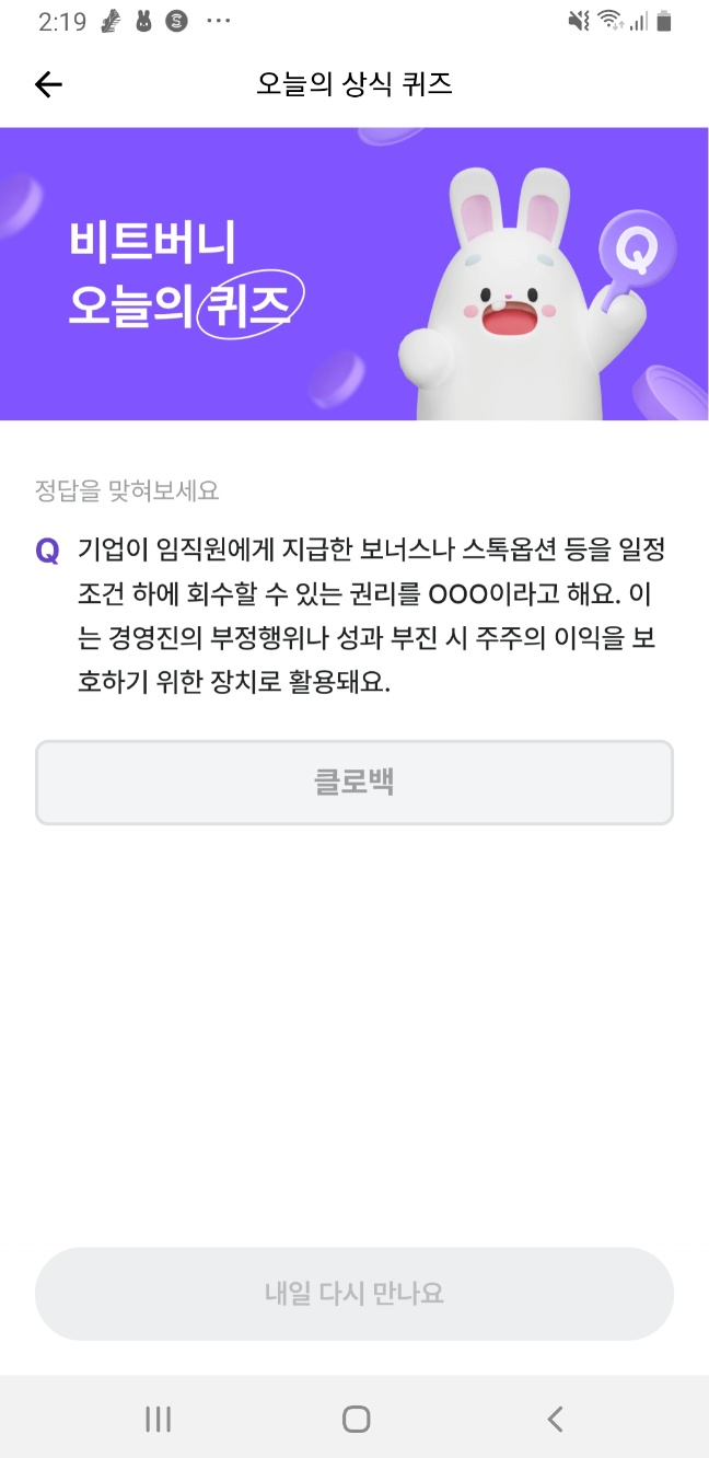 ✨ 오늘도 비트버니와 함께 퀴즈 풀며