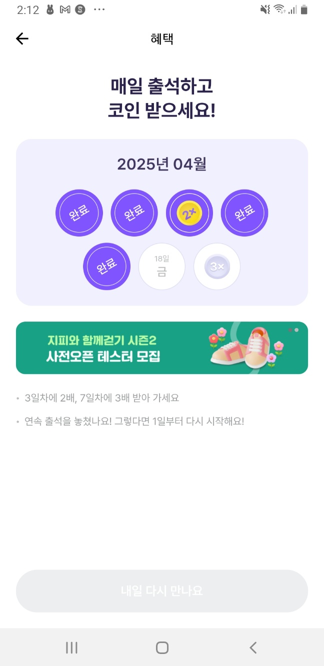 ✔ 출석 체크: 매일 출석만 해도 기본 포인트 GET!