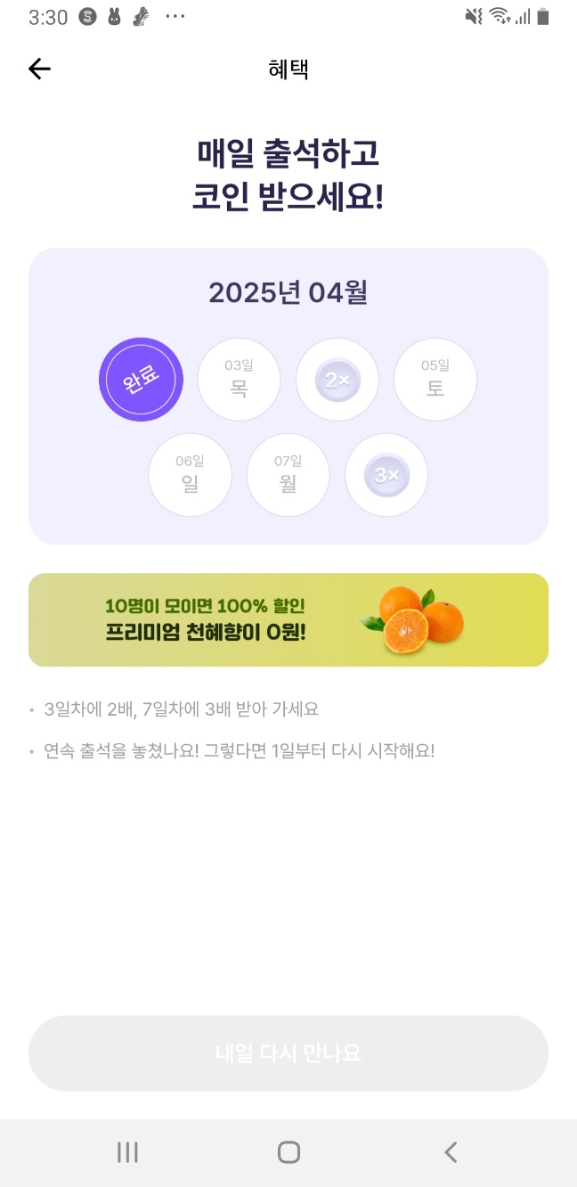 - 연속 출석 시 랜덤 곱배기 보너스 포인트까지! 🔥