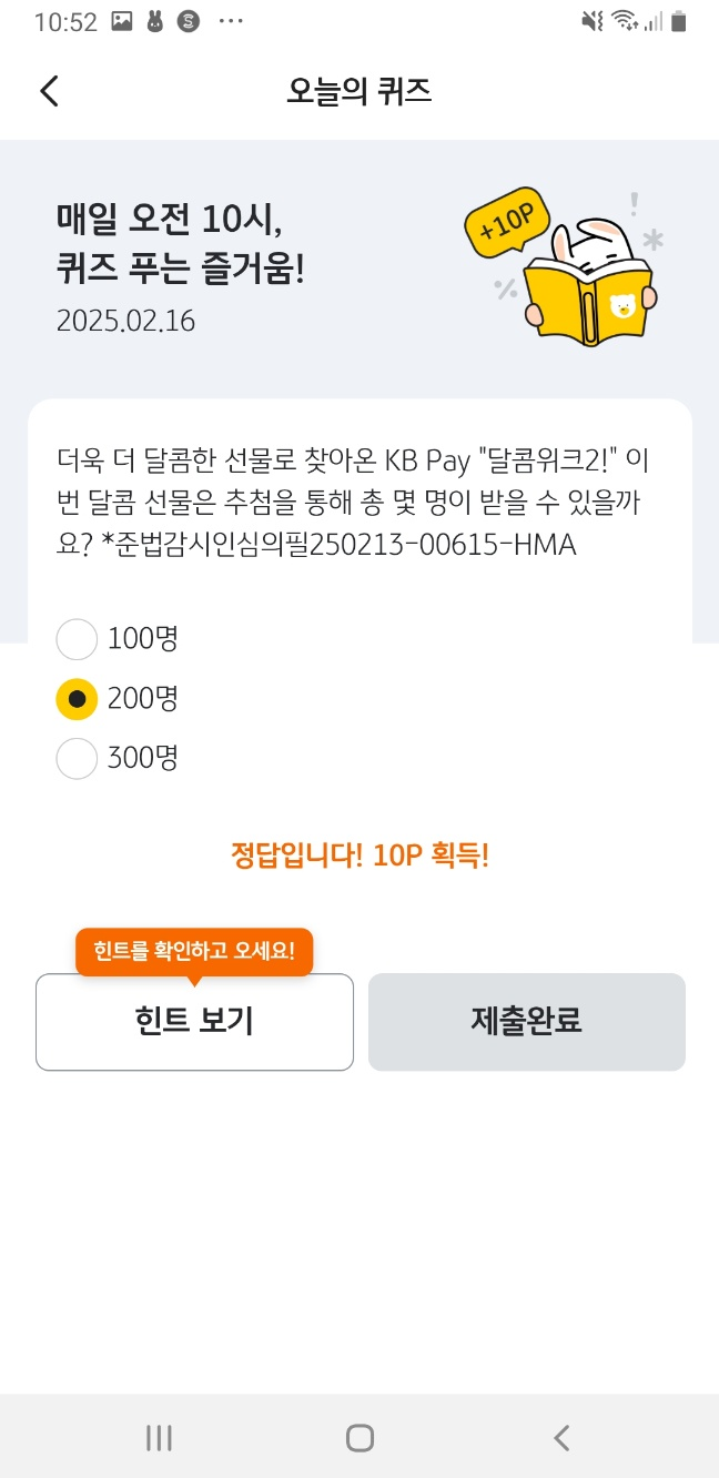 🎯 KB Pay 오늘의 퀴즈 2월 16일