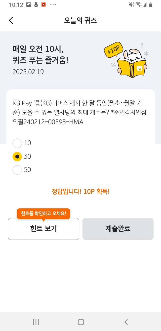 🎯 KB Pay 오늘의 퀴즈 2월 19일