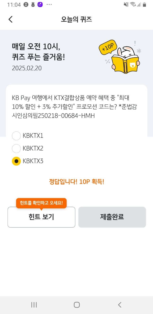🎯 KB Pay 오늘의 퀴즈 2월 20일
